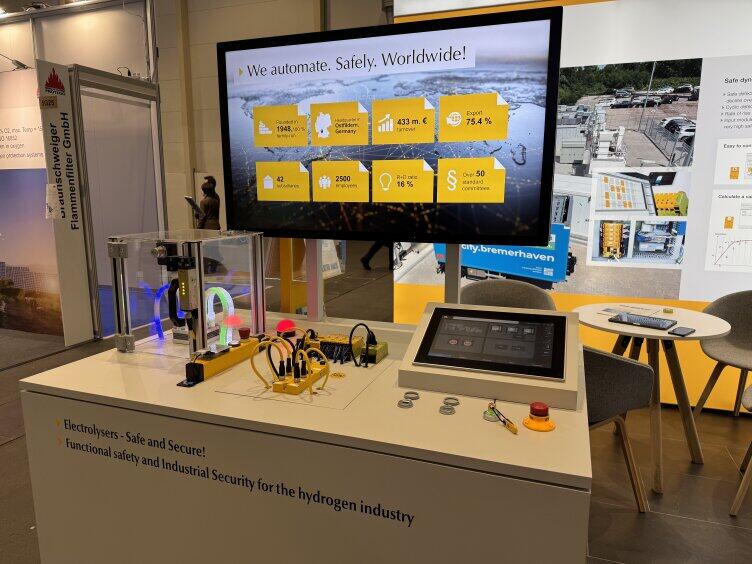 This autumn we were represented for the second time at the Hydrogen Technology World Expo - Europe's largest leading trade fair for hydrogen technologies - in Hamburg. Here we were able to present our safe automation solutions for the hydrogen industry. Highlights of our exhibition presence included safe monitoring and control of hydrogen plants, as well as advice on the directive ISO 22734, directly on the exhibition model.
