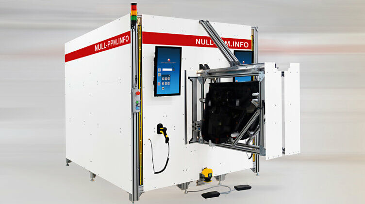 The automated test system from Brainware Solutions tests door trims at an automotive supplier. They are part of the production line, the shortest possible test time is the top priority: only 23 seconds are envisaged for alternately loading and unloading the untested and tested door trims, plus the test itself. The requirement: to guarantee a fast-running test routine, in which operators have unobstructed, safe access to both test system racks, so they can be loaded and unloaded in time. In this case, the safety laser scanner PSENscan, combined with the configurable small controller PNOZmulti 2, offers effective but not obstructive protection, so enabling minimum test times.