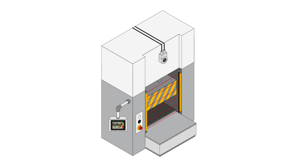 对压力机、剪切机或移动机器部件上的危险区域进行非接触式保护。用于手指保护。