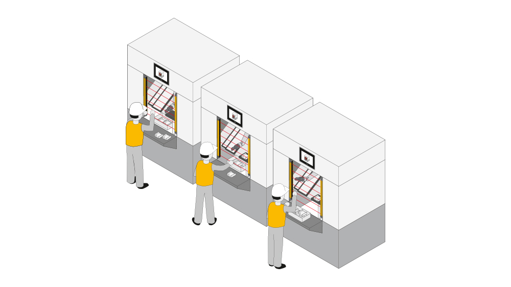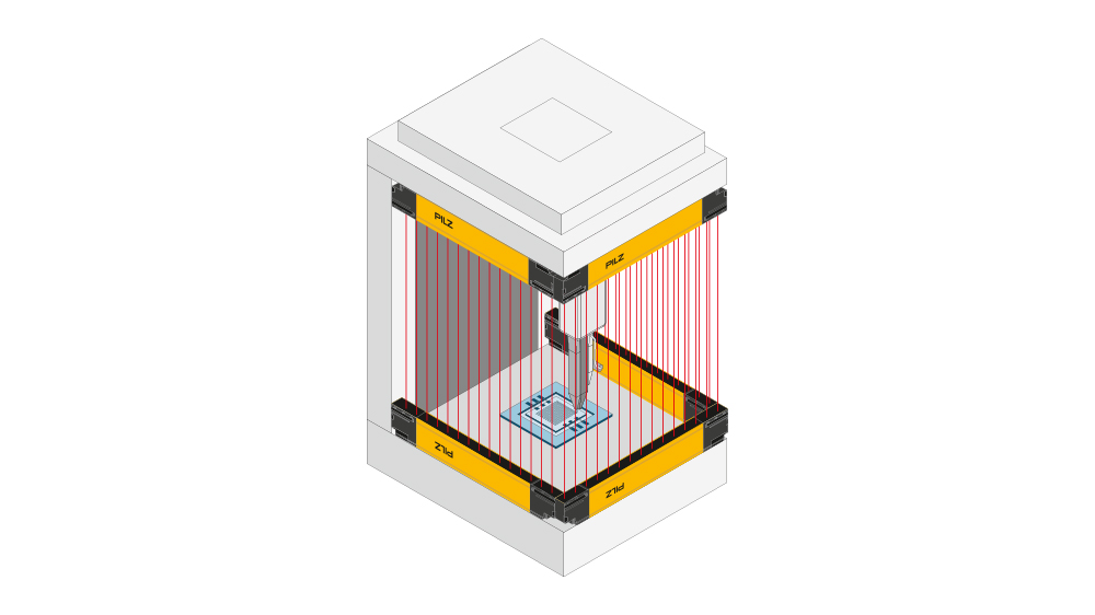 监控更大的区域,例如保护机器人单元或危险机器周围的区域。用于手部保护。